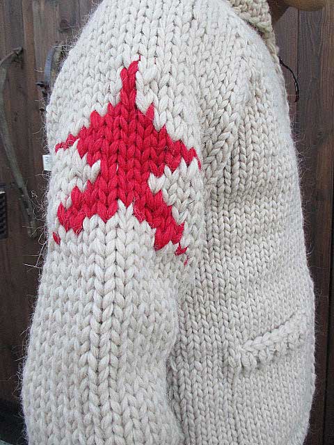 カウチンセーター ピュアウール 1990s 厚手 ハンドニット ビンテージ ニットジャケット ウール カーディガン ショールカラー 手編み カウチン編み カナダ製 数量限定