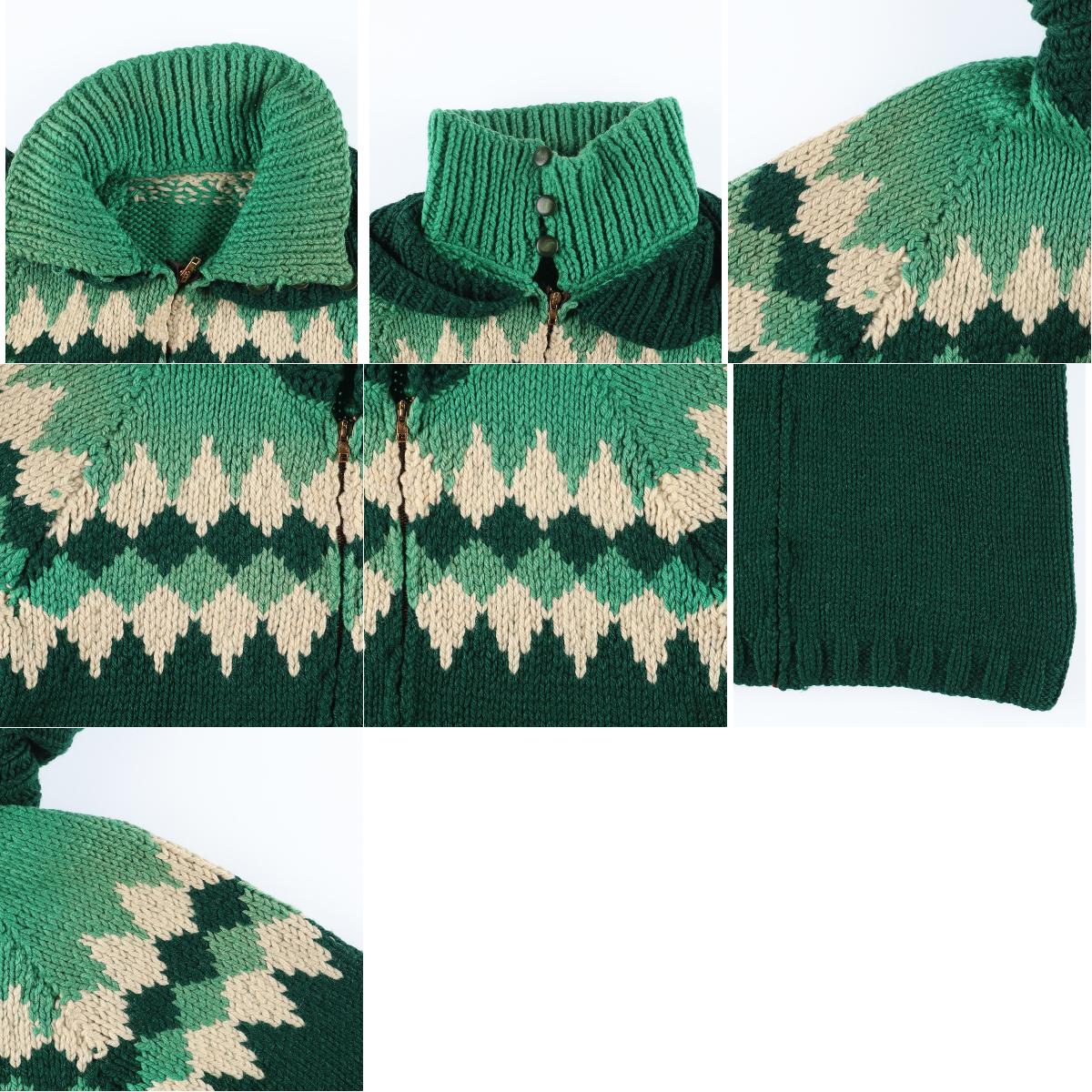 VINTAGE ヴィンテージ 1960年代 カウチン セーター クローバー柄 CCジッパー M程度 USED 20200907