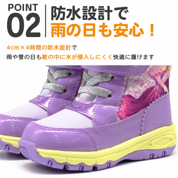 【在庫一掃セール 4/28 1:59まで】 ブーツ キッズ 長靴 ベビー レイン スノー ブルー ピンク パープル 防水 ボア ディズニー MOONSTAR DN WC034E DN WC035E 母の日