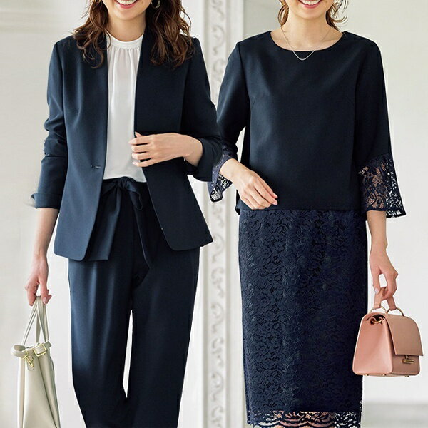 GeeRA フェミニンレース使い着まわし4点スーツ ジーラ ビジネス/フォーマル セットアップスーツ ネイビー ブラック【送料無料】