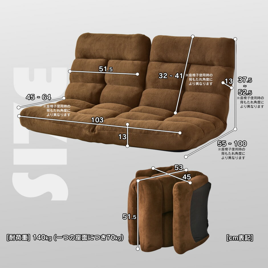 ●商品詳細 -infomation- 商品名 座椅子 Pioncer 【ピオンセ】 サイズ 幅103×奥行55〜100×高さ13〜52.5(cm) 材 質 構造部材:スチールパイプ 張り材:ポリエステル100% クッション材:ウレタンフォーム・ウレタンチップ 重 量 本体:10kg 梱包重量:12kg 梱包サイズ 幅55×奥行43×高さ55(cm) 備 考 ※沖縄・離島・北海道は別途送料お見積りとなります。